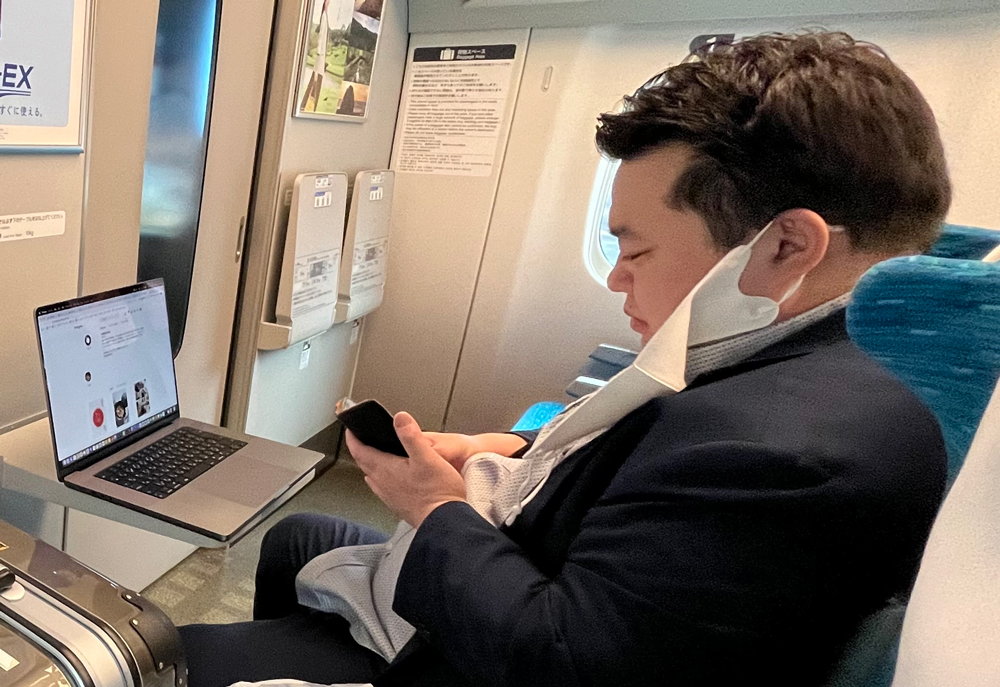 ↑移動中も渉外委員会ホームページを更新し続ける嶋崎副委員長。