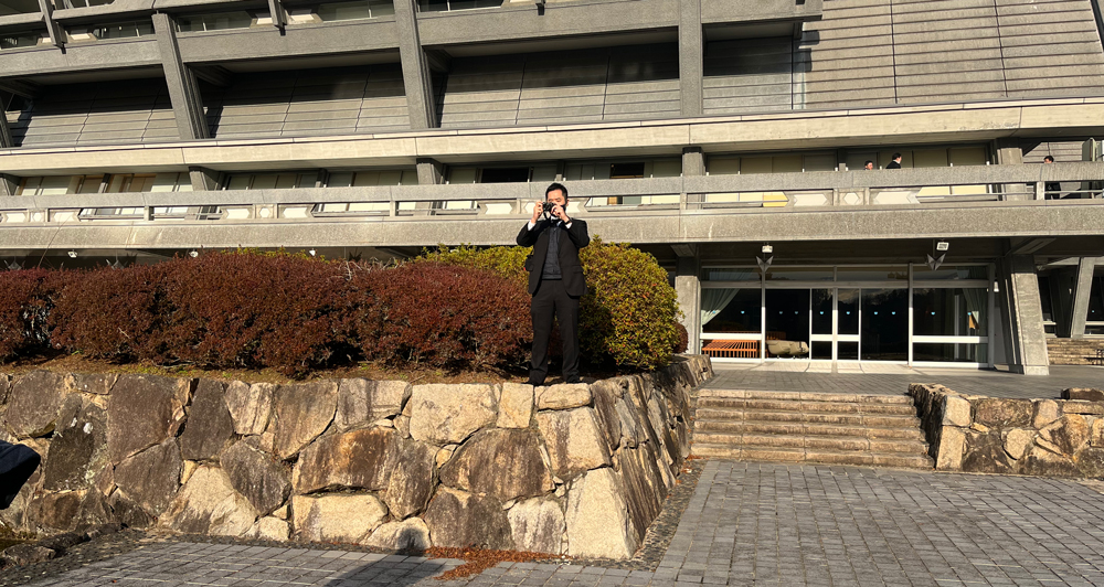 その後、様々な会場や通路を確認し、最後に最終日の集合写真撮影場所のチェック。