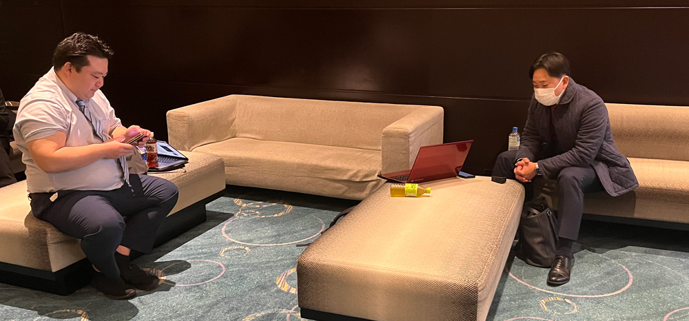 ↑JCI日本総務委員会委員長として出向している佐藤出向常任理事(写真真ん中)と同じくJCI日本総務委員会総括幹事として出向している長谷川君(写真左)