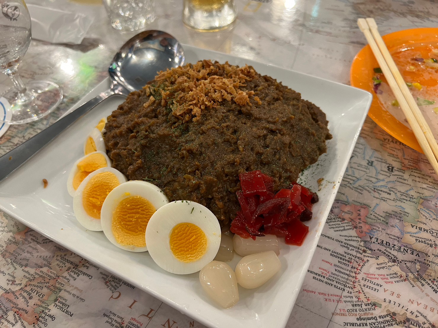 料理がとてもおいしかったのと店内はオーナーが実際に行った国の写真が壁やプロジェクターで投影されてました。
