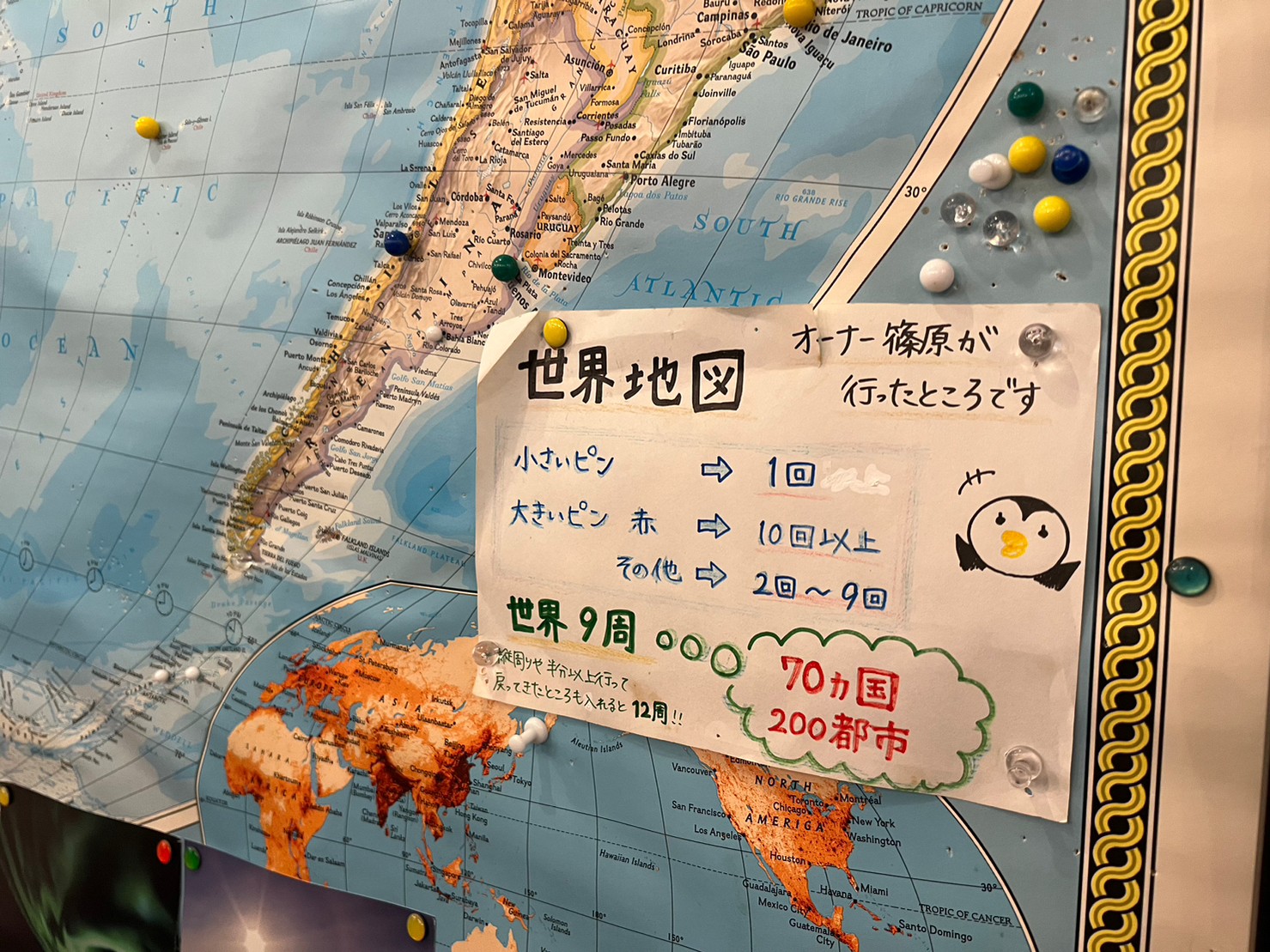⇧オーナーが今までに行った国々にピンがさしてあります。