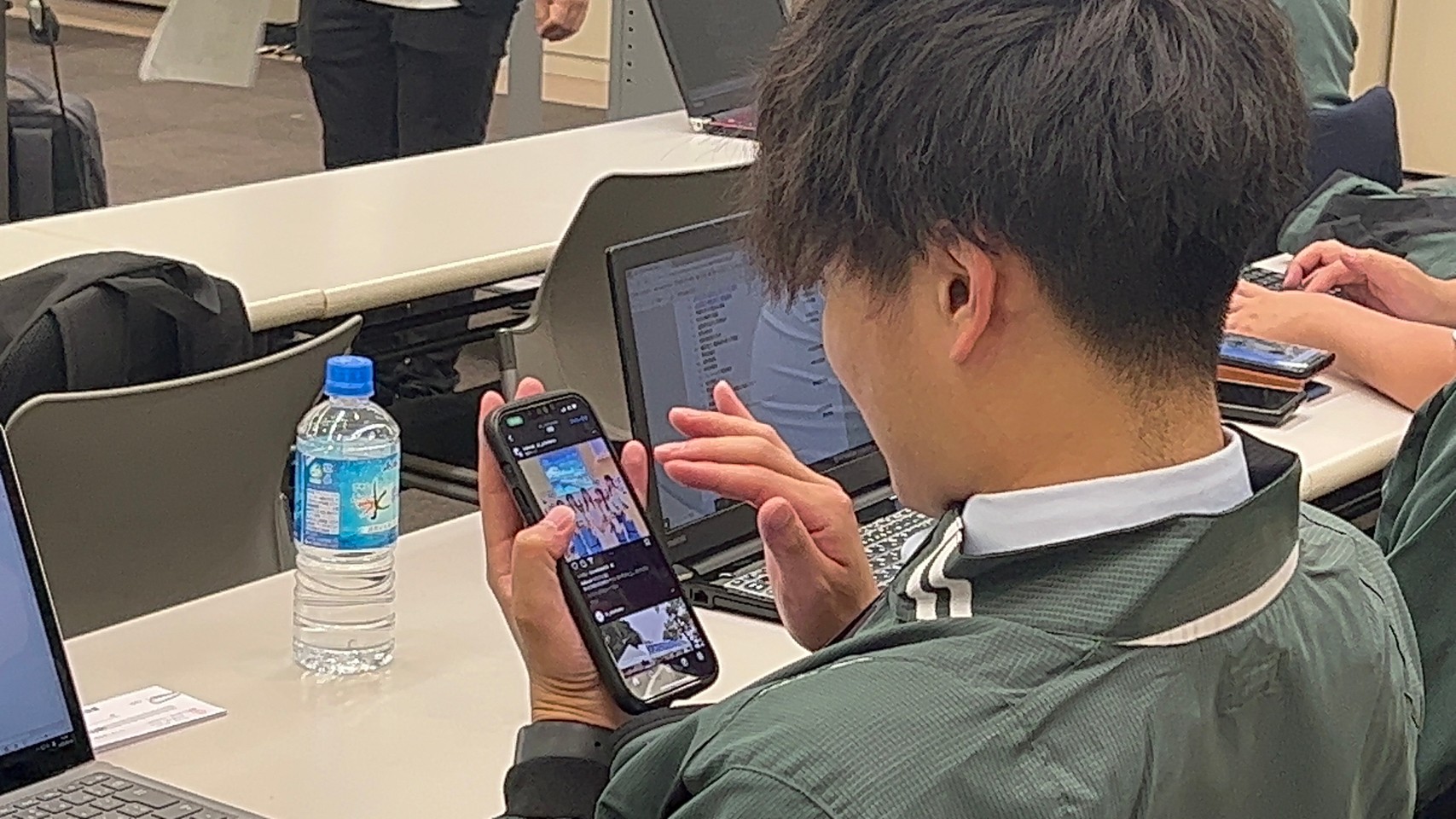 沖田会計幹事もInstagramを早速登録しておりました。※この後二本指で顔をアップして見てました。