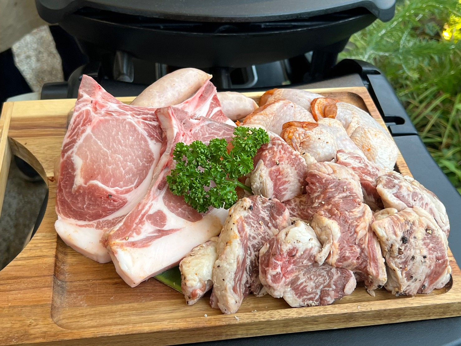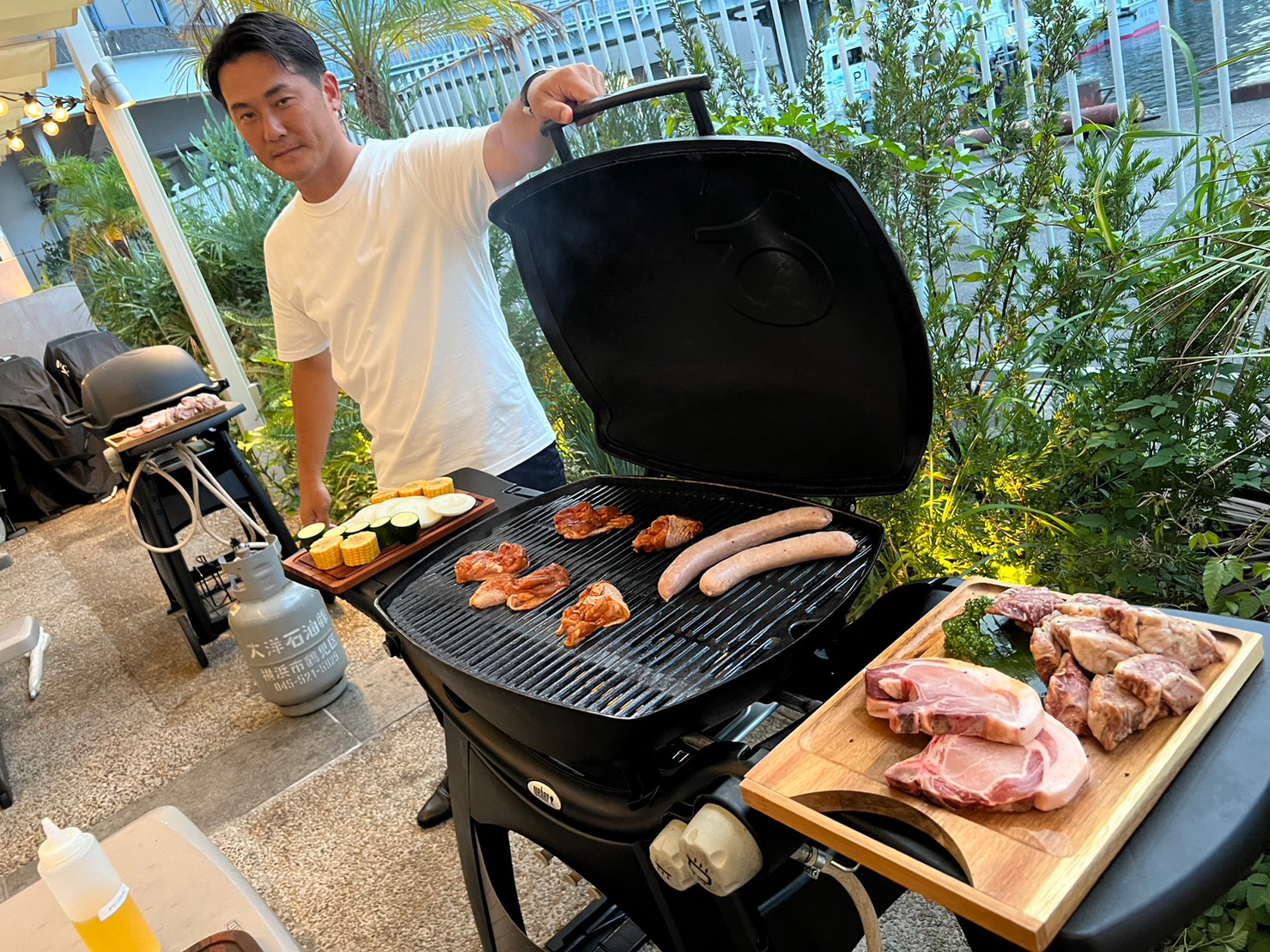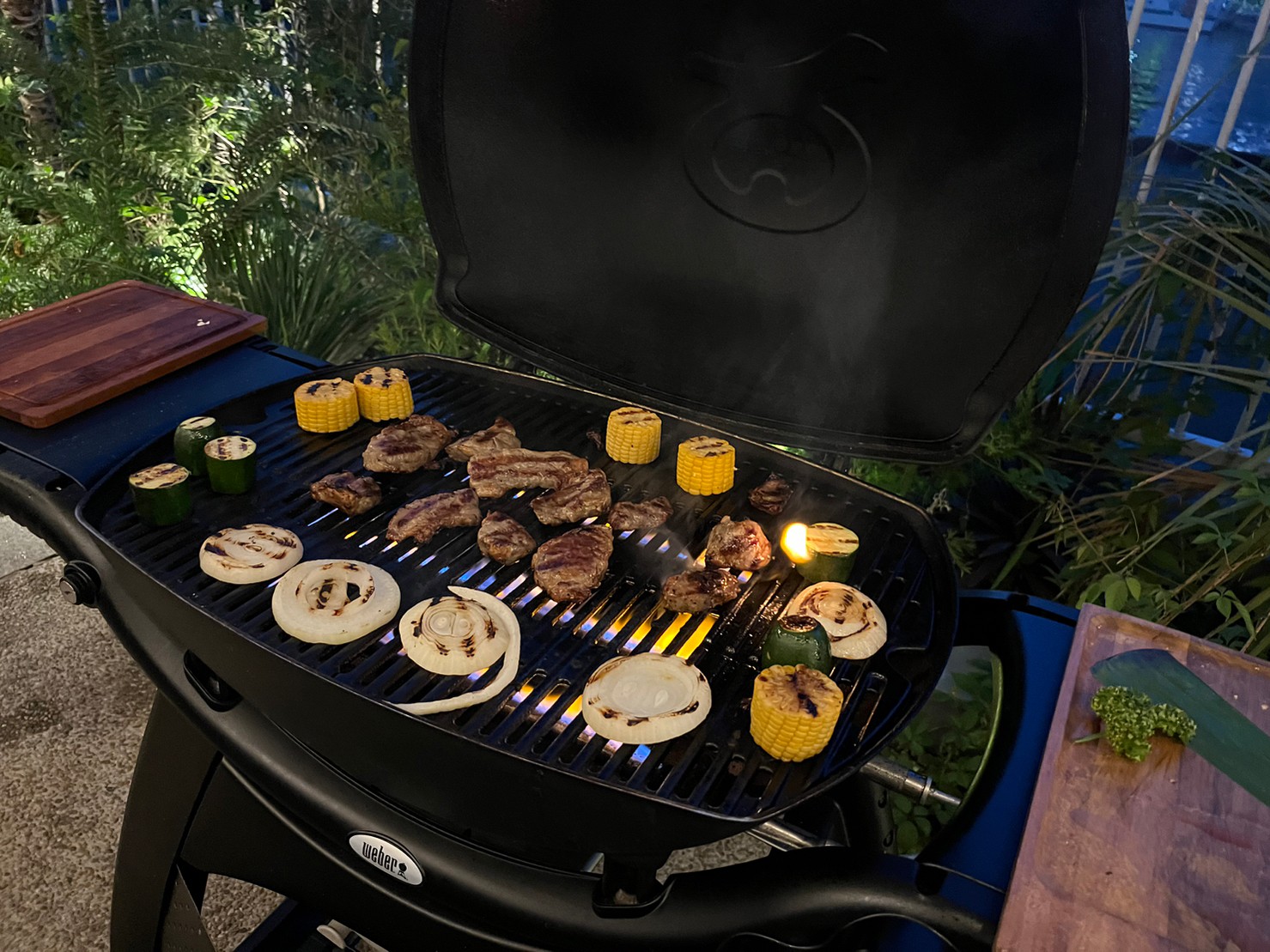皆でお肉焼きました、たまに野菜も焼きましたとてもおいしかったです。ポテトもおいしい。