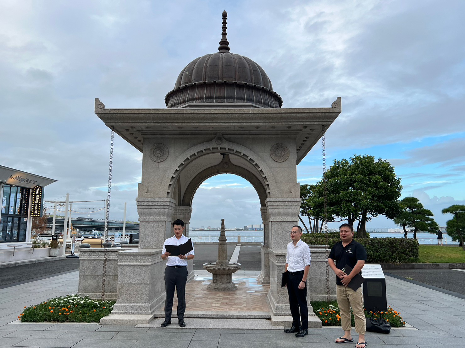 今回は移動例会ということで山下公園はインド水塔の前でセレモニーを行いました。
