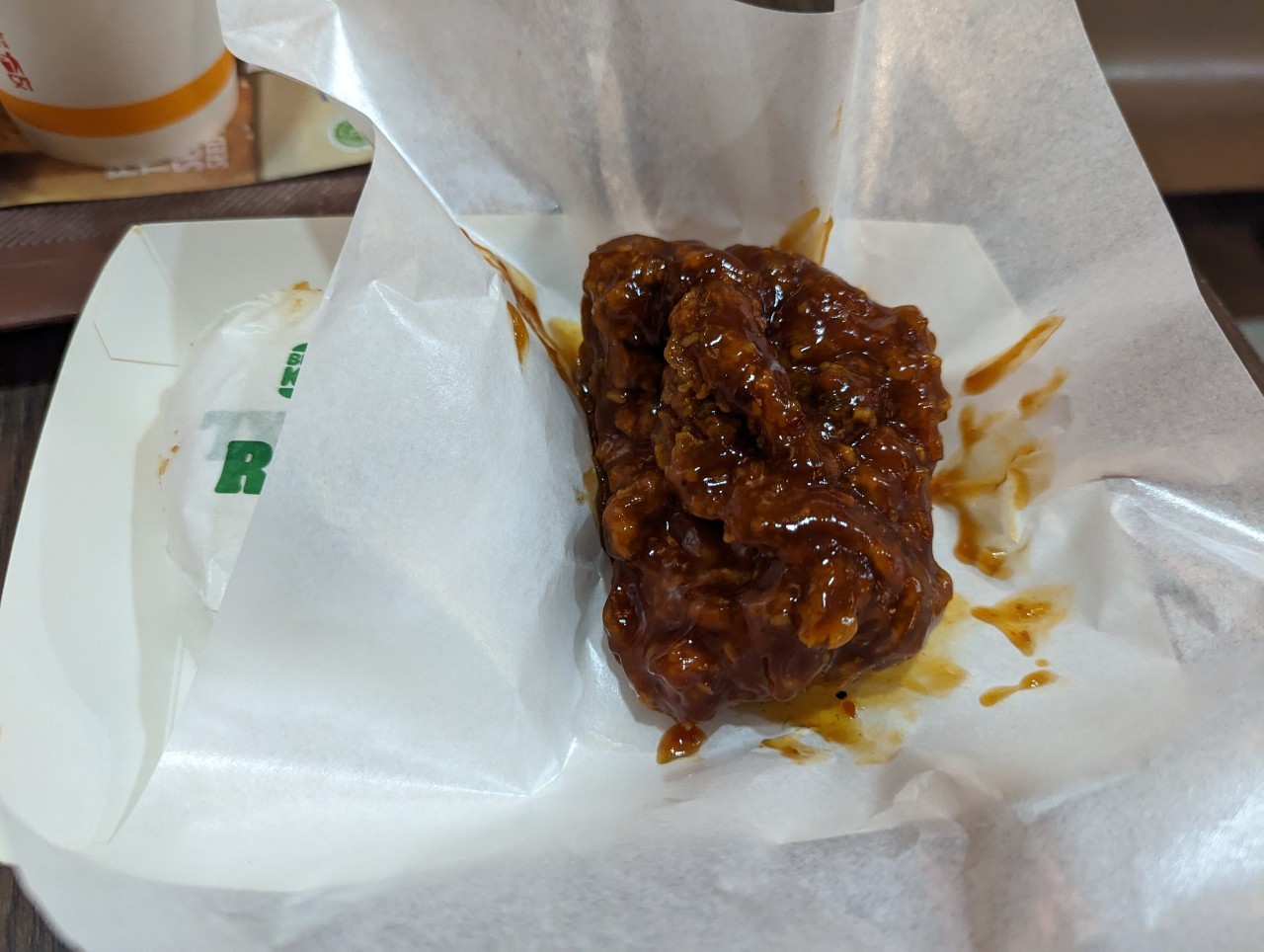 ⇧スパイシーチキン、劇物です。食べていると口の周りがヒリヒリと痛くなり口呼吸するたびに口内に激痛が走る危険物です。