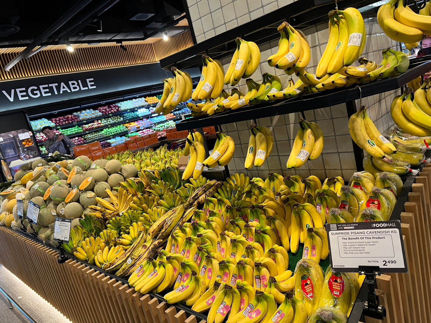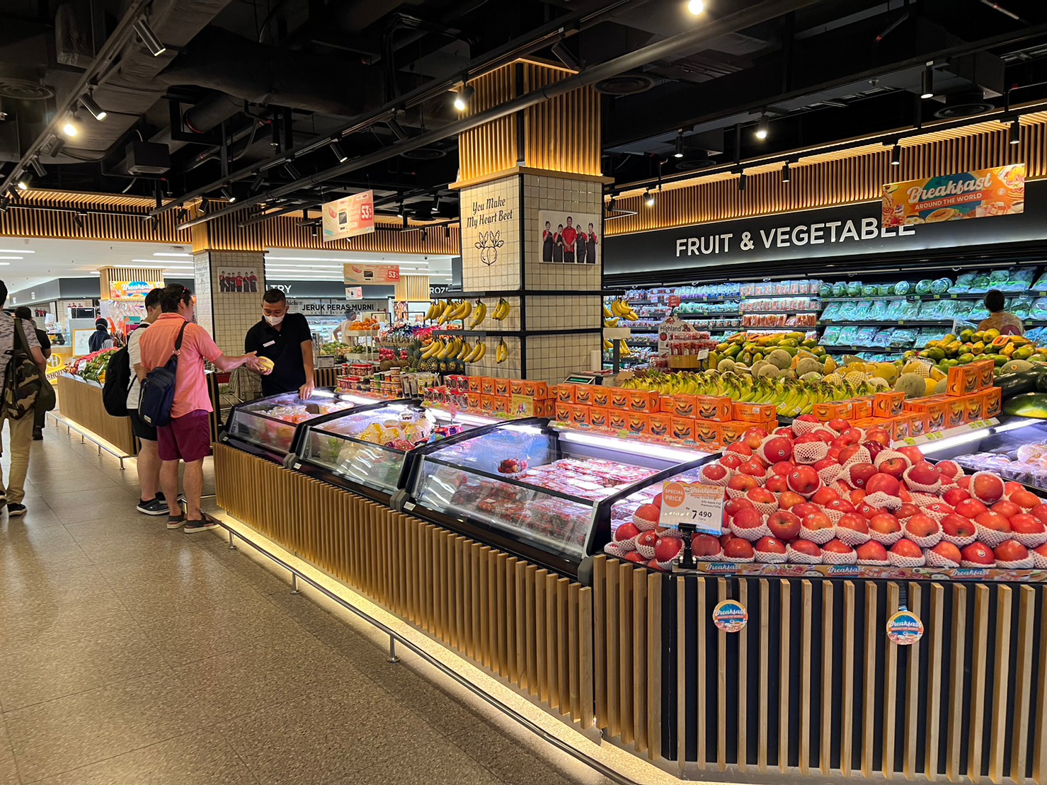 たくさんのフルーツが並んでいる専門コーナーがあってほかにも日本料理のお店やチェーン店も入っていました。