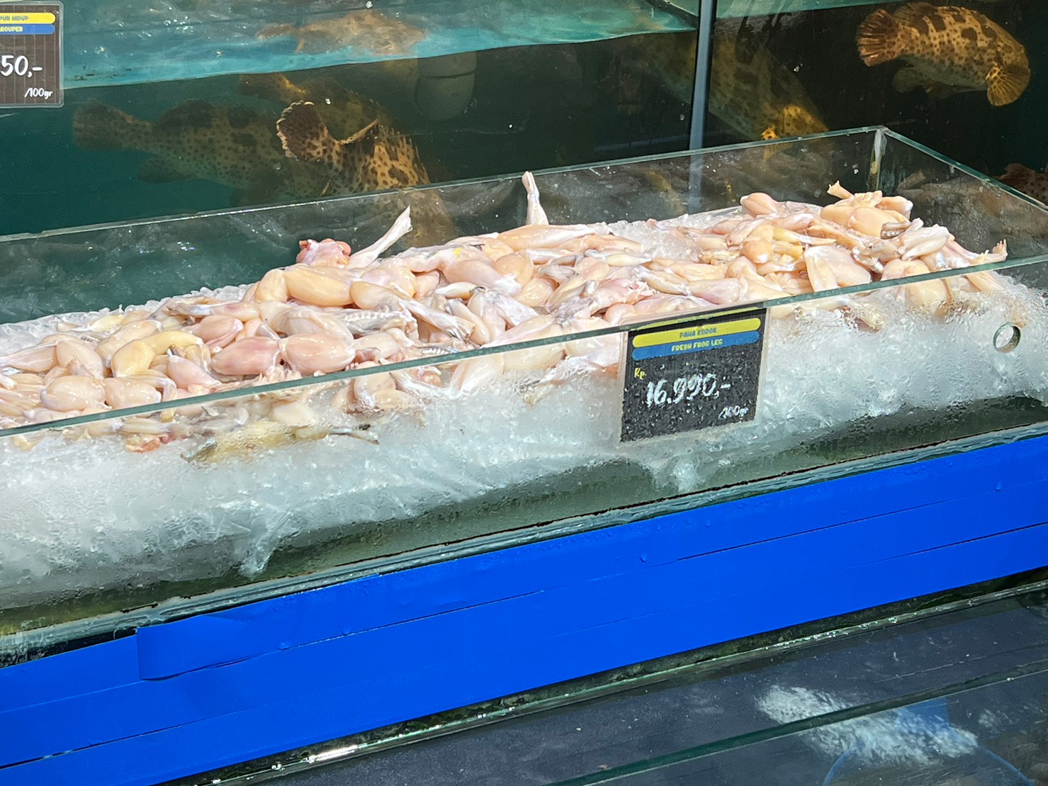 ⇧生鮮食品も充実しており、もちろんカエル売ってました。