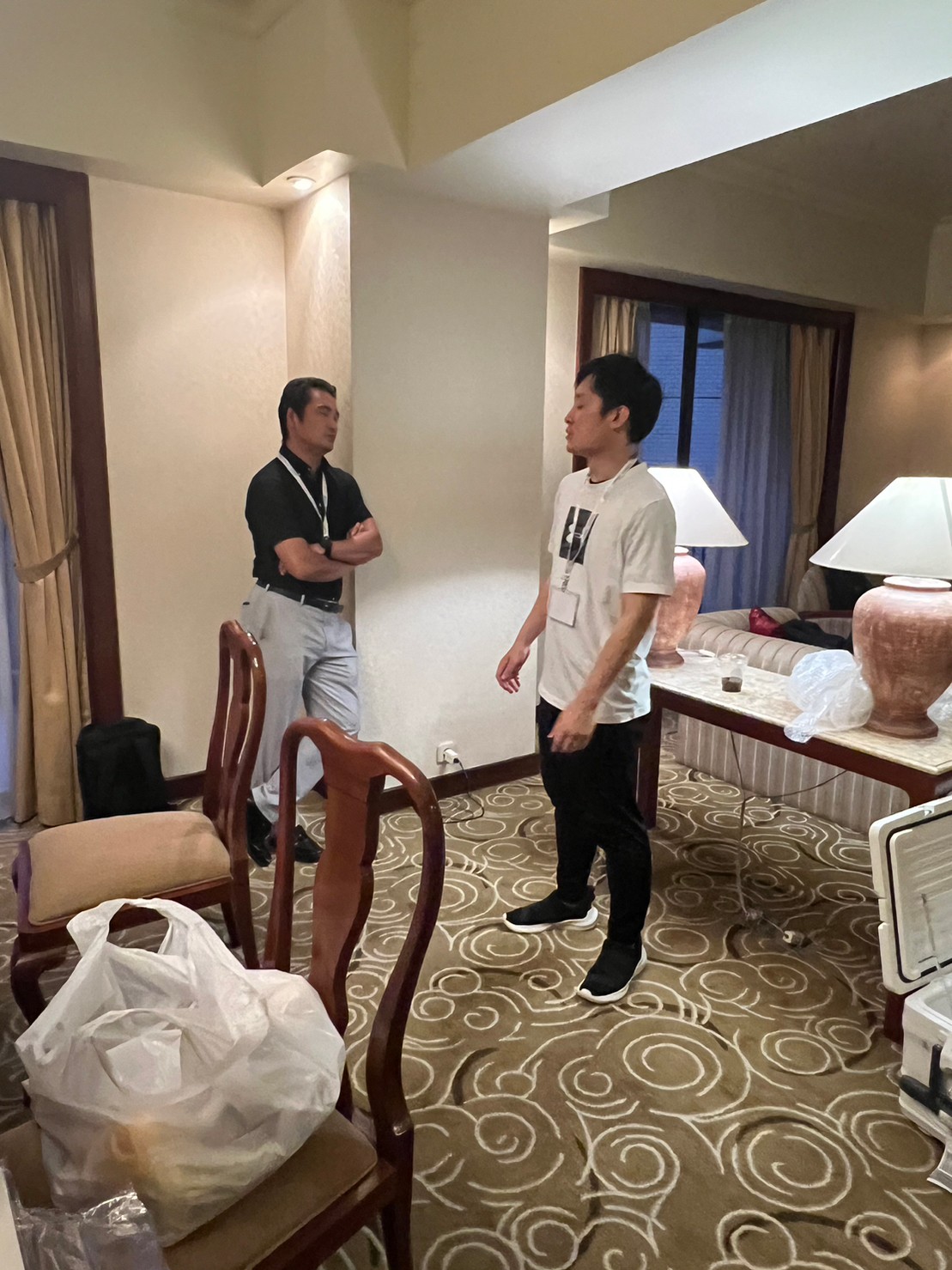⇧嶋崎副委員長は通常の部屋を予約したはずがアップグレードされて1人で泊まるには広すぎるスイートになっていました。その為自動的に渉外委員会本部に、、、