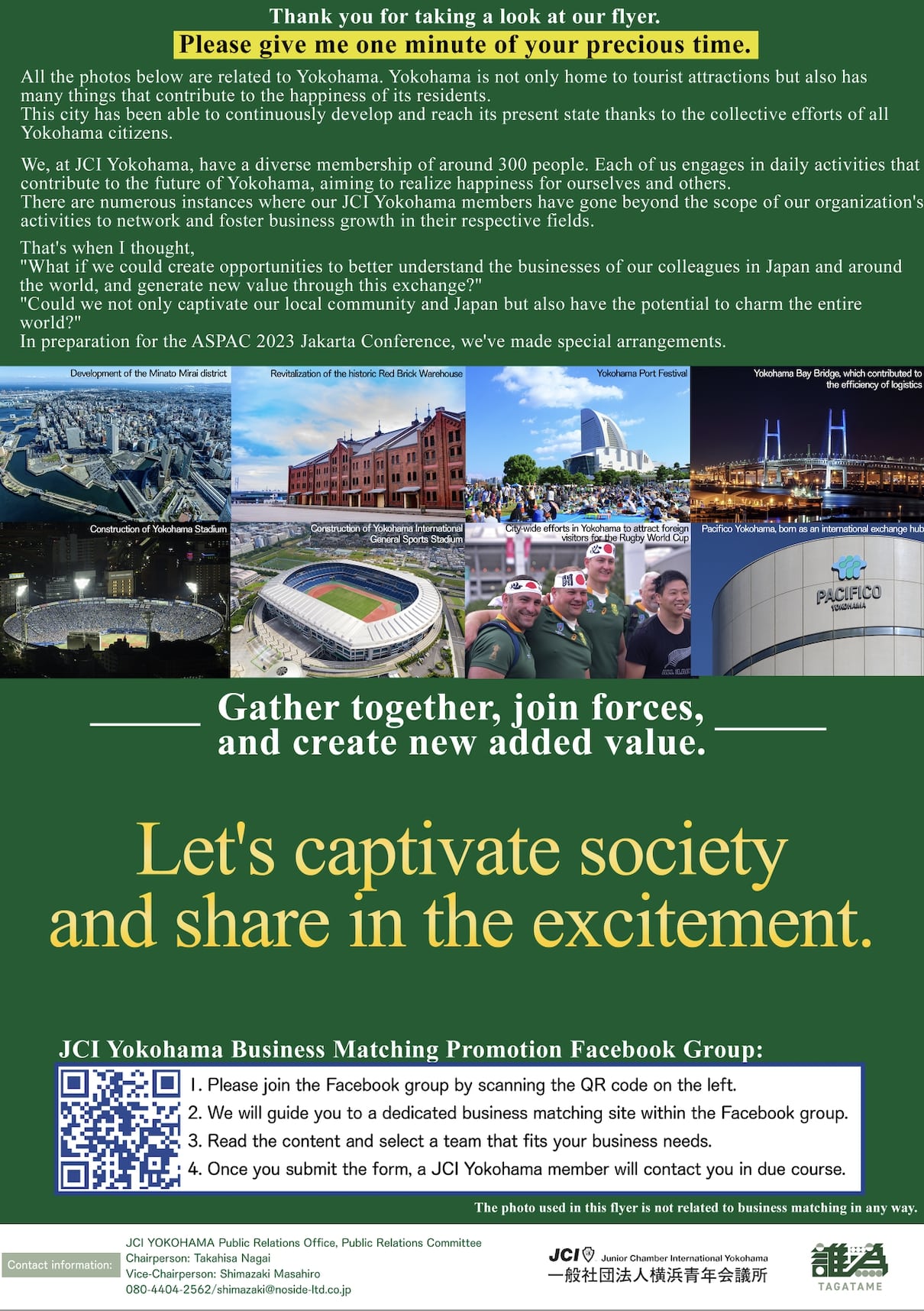 また、特設サイトはASPAC終了後も2023年9月末までの掲載を予定※しているため、JCI横浜内での認知拡大にも繋がります。結果的に横浜内部でのマッチングにも繋がれば嬉しい限りですので、遠慮なくご応募ください。