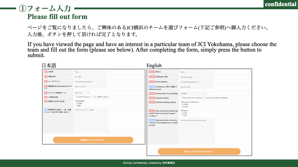マッチング希望時の入力フォームではJCI横浜メンバーへの個別マッチング希望を出すのではなく、チーム単位でのマッチング依頼をしていただきます
