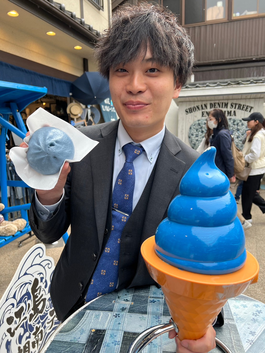 写真の後ろはデニム専門店でデニムの傘などすべてデニムの商品が売っていました。