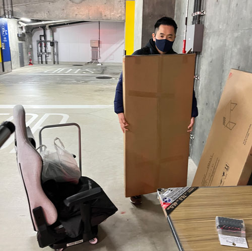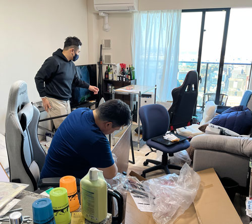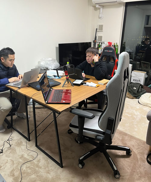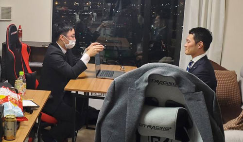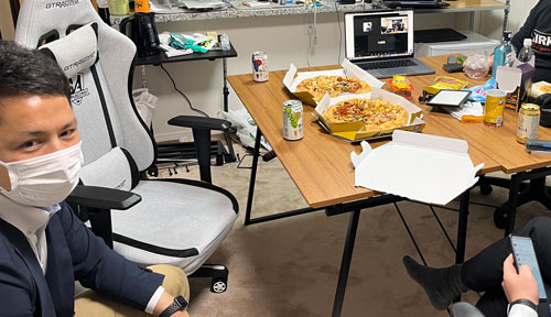 嶋崎副委員長の自宅で作業することが多いです。(写真は撮影時のみマスクを外しております)